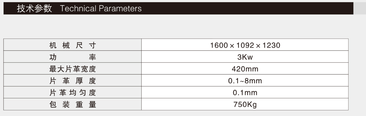 1. 数字显示片皮厚度,剖削皮革厚度可调,片革厚度均匀、平整;